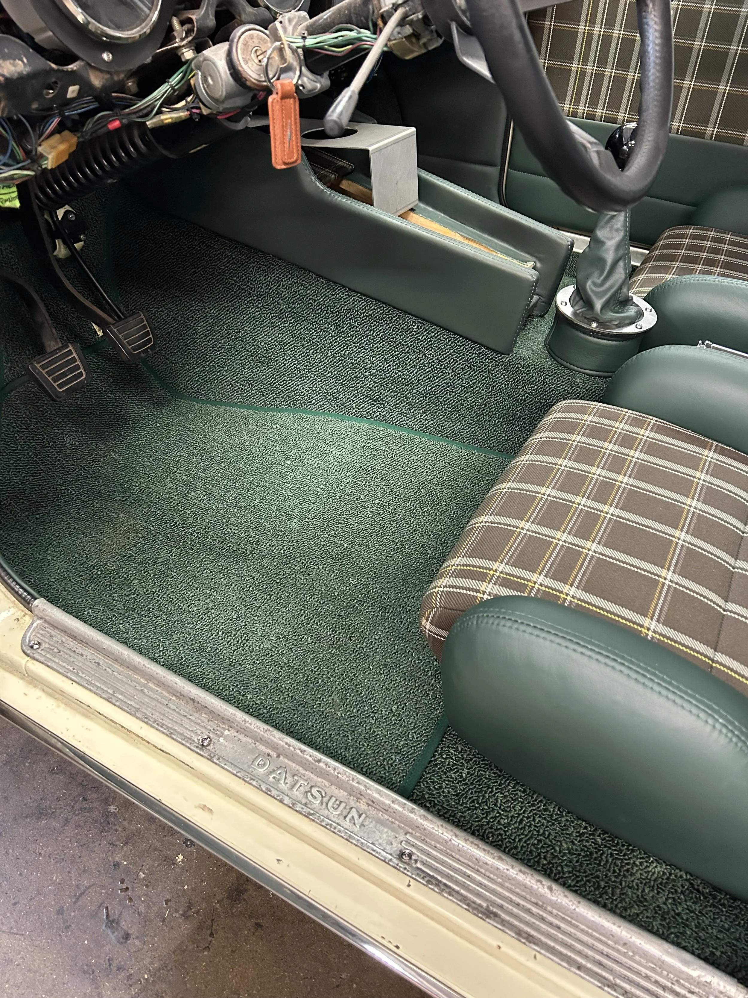 How’d it turn out? In early December (ahead of schedule), Justin and Dale at Paul’s Auto Interiors completed the project and did a wonderful job on the entire interior. The carpets, rugs, dyed headliner, seats, doors, dash and trunk area turned out great. There are some nice touches that I’ll get into in a later post. The car turned out great and feels a bit quieter and solid with the boom mat + padding + carpet.